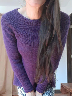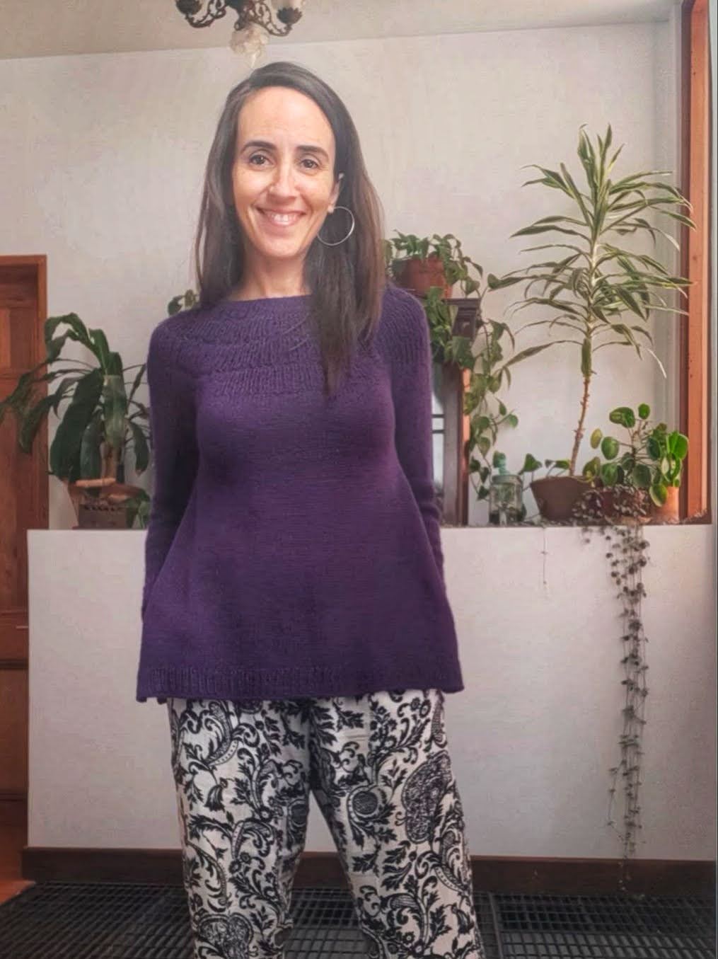 I seamed the diagonal lines and wet-blocked the bottom of the sweater. I love it! I think it looks great and it's super soft (knitted with Indiecita Baby Alpaca) and comfy.